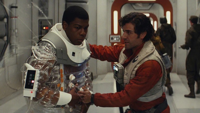 Deciding that this is the one he’s going with, Finn enters Poe’s room to find Poe and Rose discussing the logistics of the miracle that just might save the Resistance. Finn is stunned but is immediately on board with the plan when Poe asks him to.